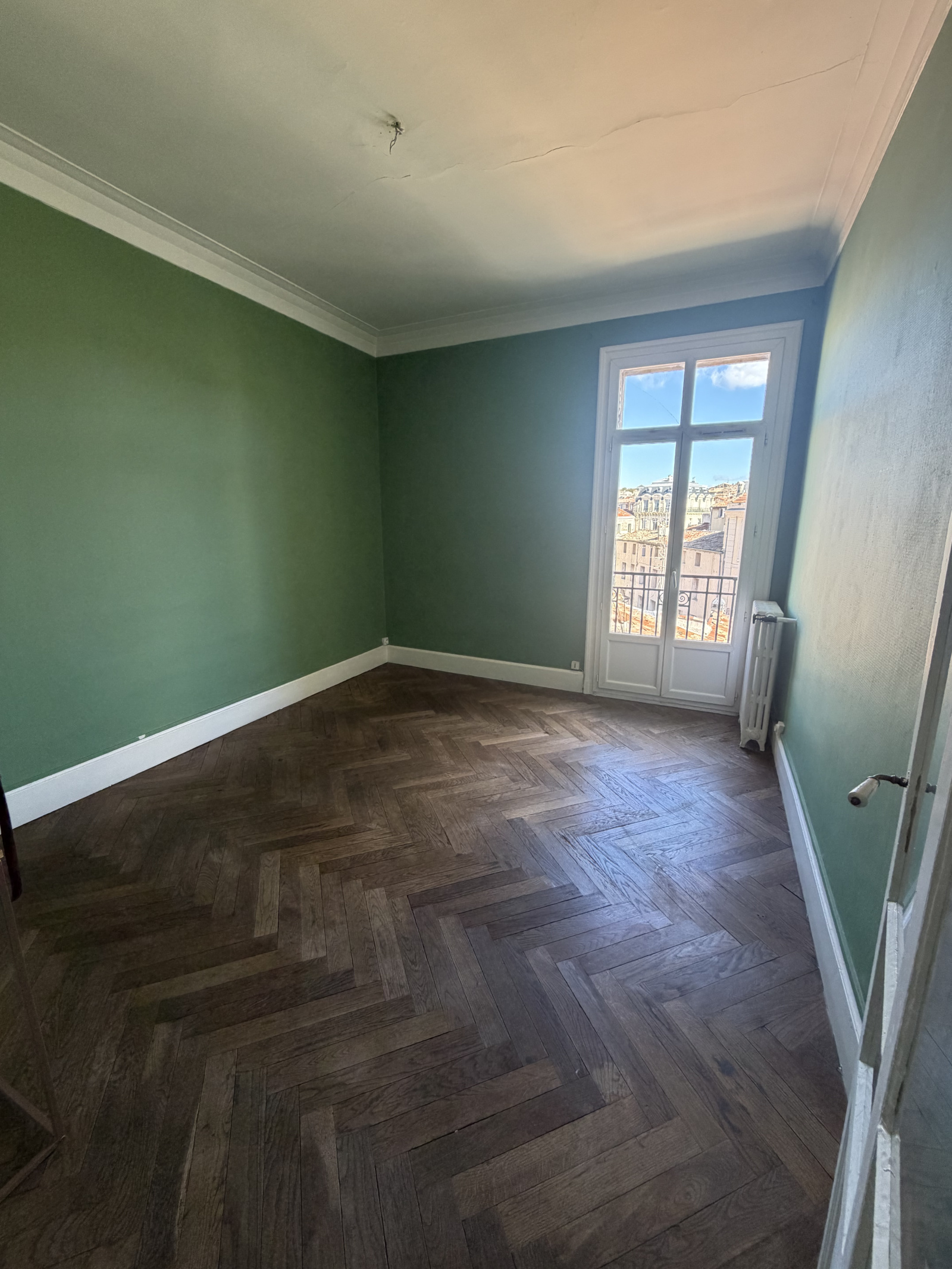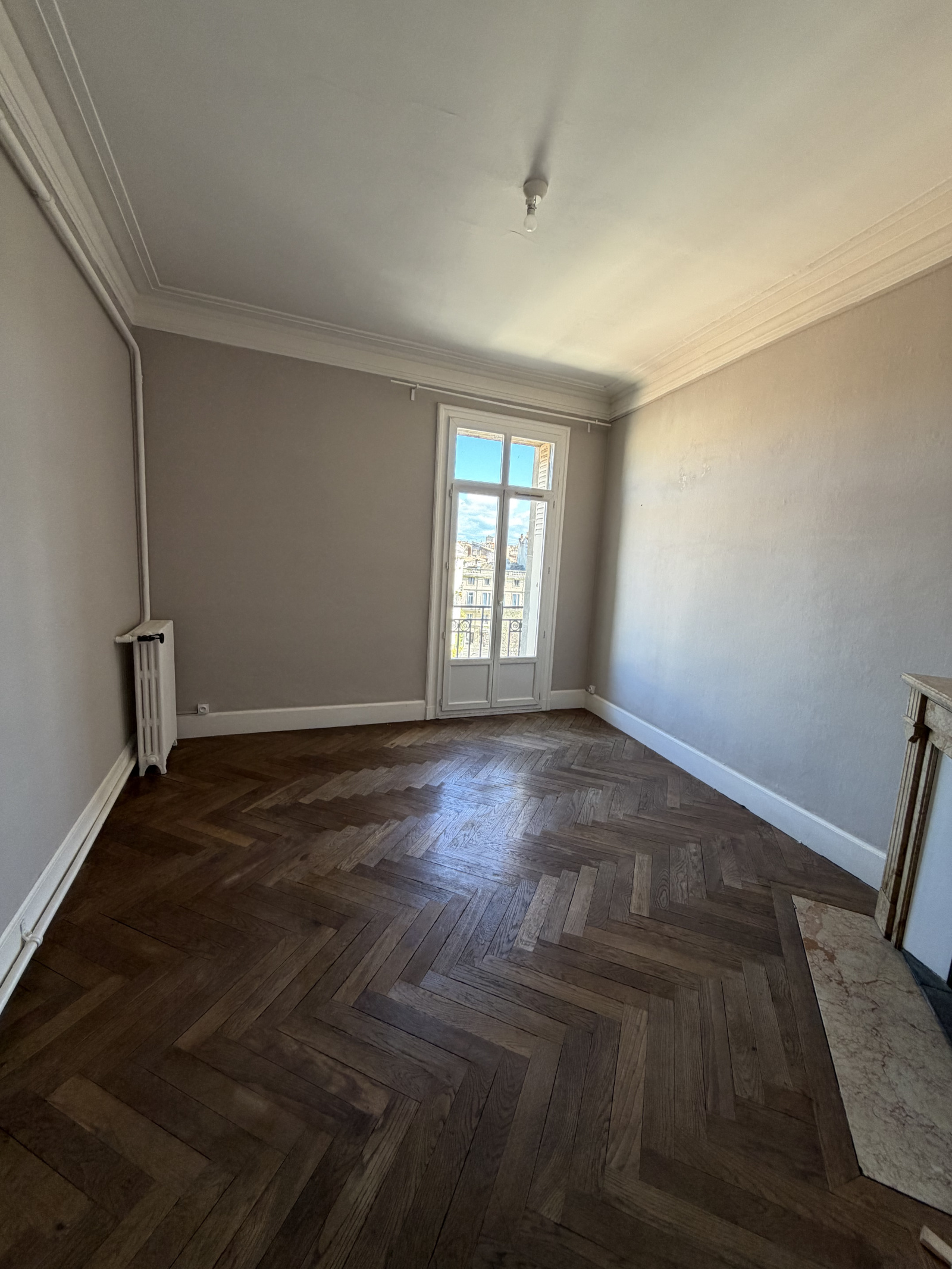 Appartement de type F4 de 92m2 situé au 4ème composé d'un grand couloir de deux séjours, deux chambres, une salle de bain avec baignoire, d'une cuisine non-équipée et no-aménagée et d'un WC indépendant.